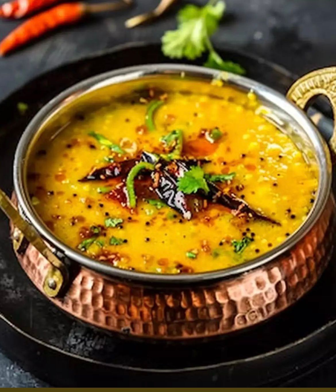 Yellow dal tempered with garlic and spices.